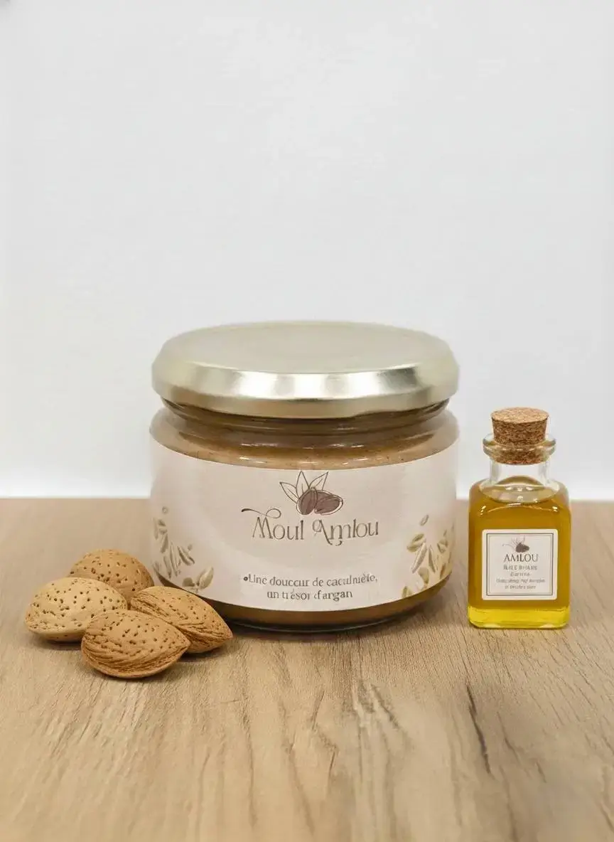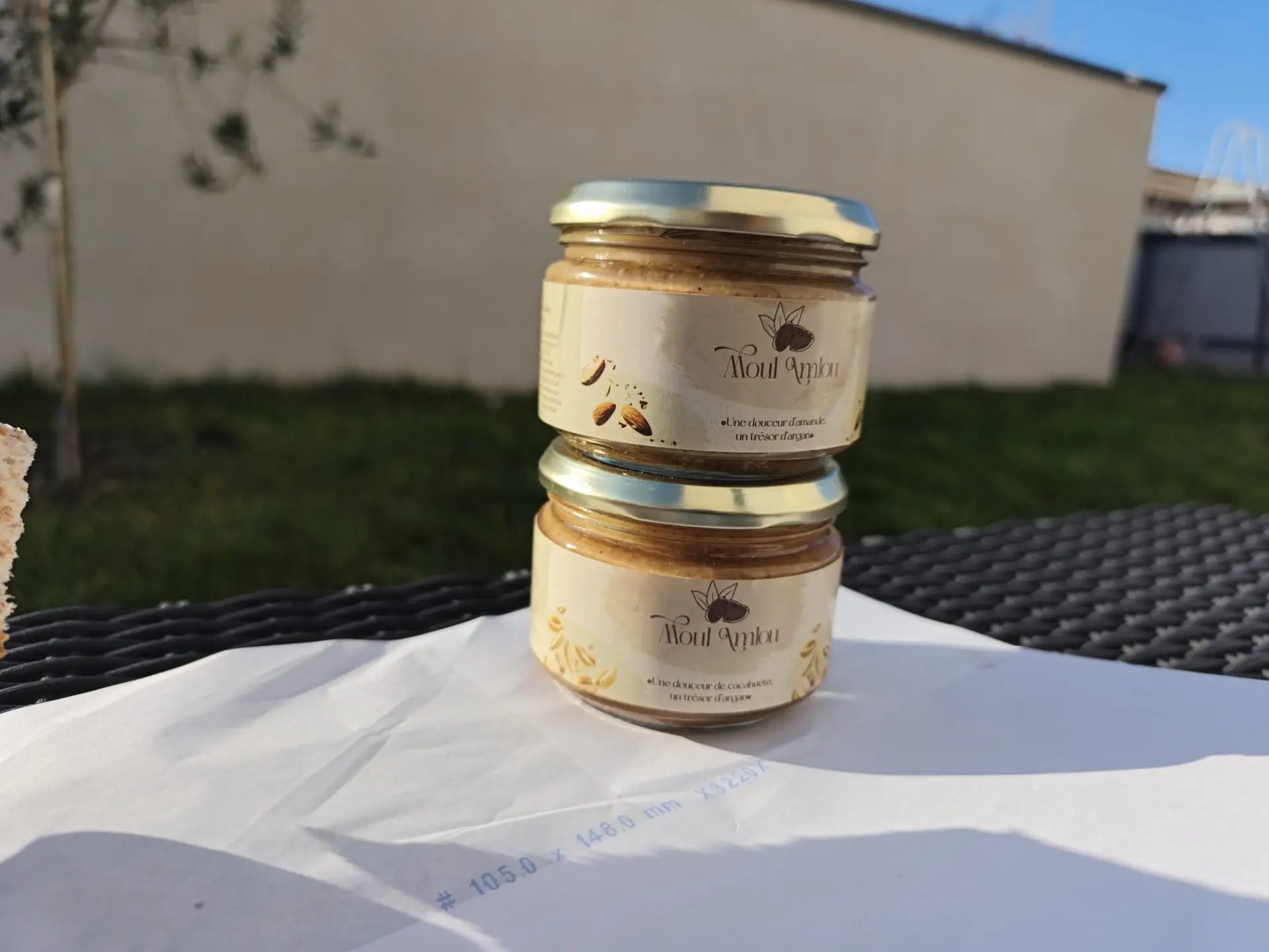 Amandes soigneusement sélectionnées, huile d’argan et miel d’oranger.